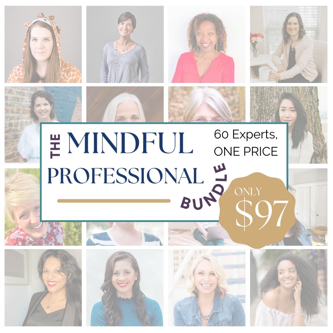 The Mindful Professional Bundle has everything you need to live intentionally and mindfully at work AND at home, broken down into 5 categories, so you can easily find exactly what you need, when you need it…and ignore anything you don’t!